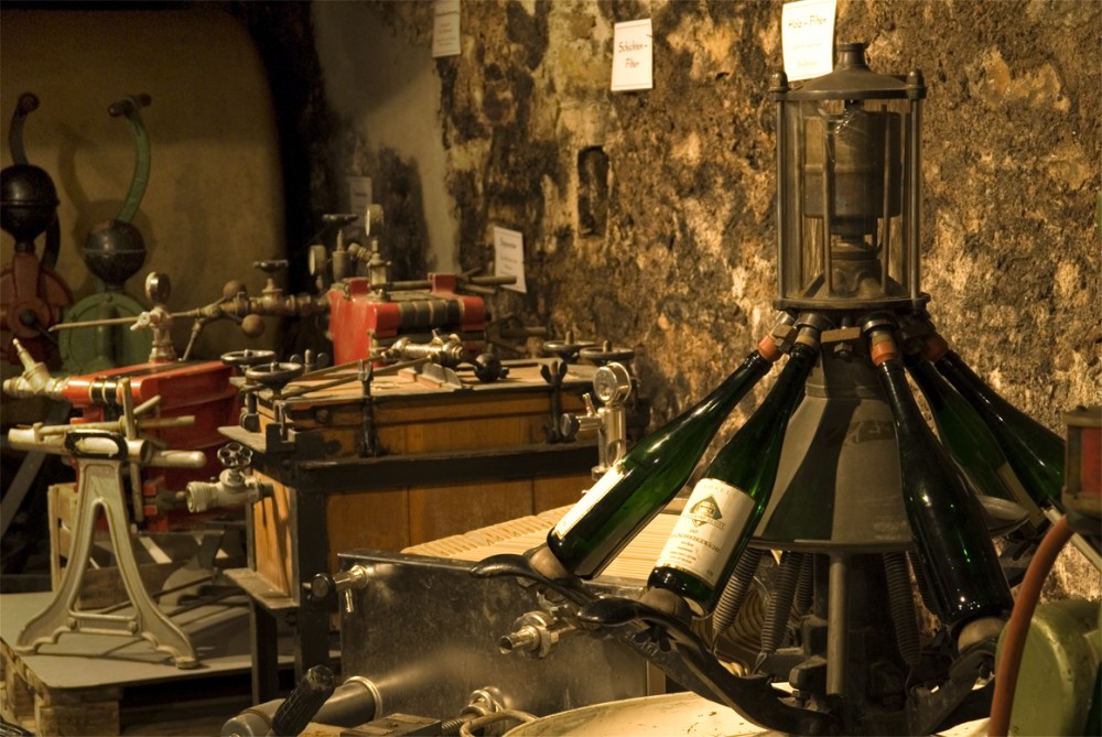Die Besucher des Museum werden über Sprachboxen zu den einzelnen Stationen informiert. Die kurzen Erklärungen können wahlweise in Deutsch, Niederländisch oder Englisch ausgewählt werden. Im Kellerbereich erfahren Sie das Wichtigste über die Weinherstellung. Wenn Sie den alten Fasskeller betreten wird der Raum illuminiert und es beginnt plötzlich in einigen Fässern zu gären. Nach einem kurzen Exkurs in die Sektherstellung betritt man anschließend einen Raum, in dem seltene Geräte der historischen Weinabfüllung aufgebaut sind. Aus dem Keller geht es eine kleine Treppe aufwärts in einen Gang, der zum alten Kelterhaus führt. Dort erhalten Sie weitere Informationen zum Hauptraum des Museums, den Sie im Anschluss betreten.
